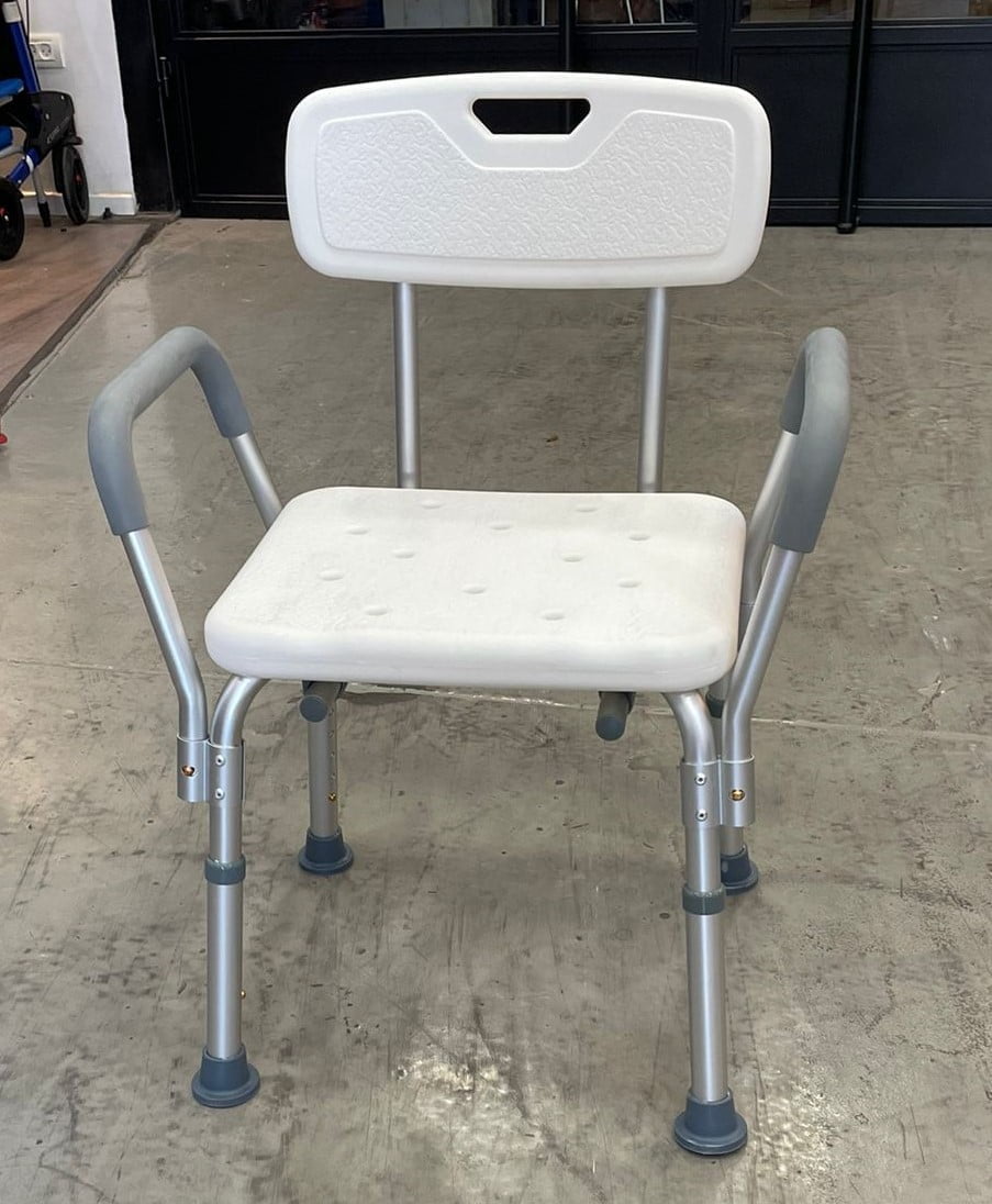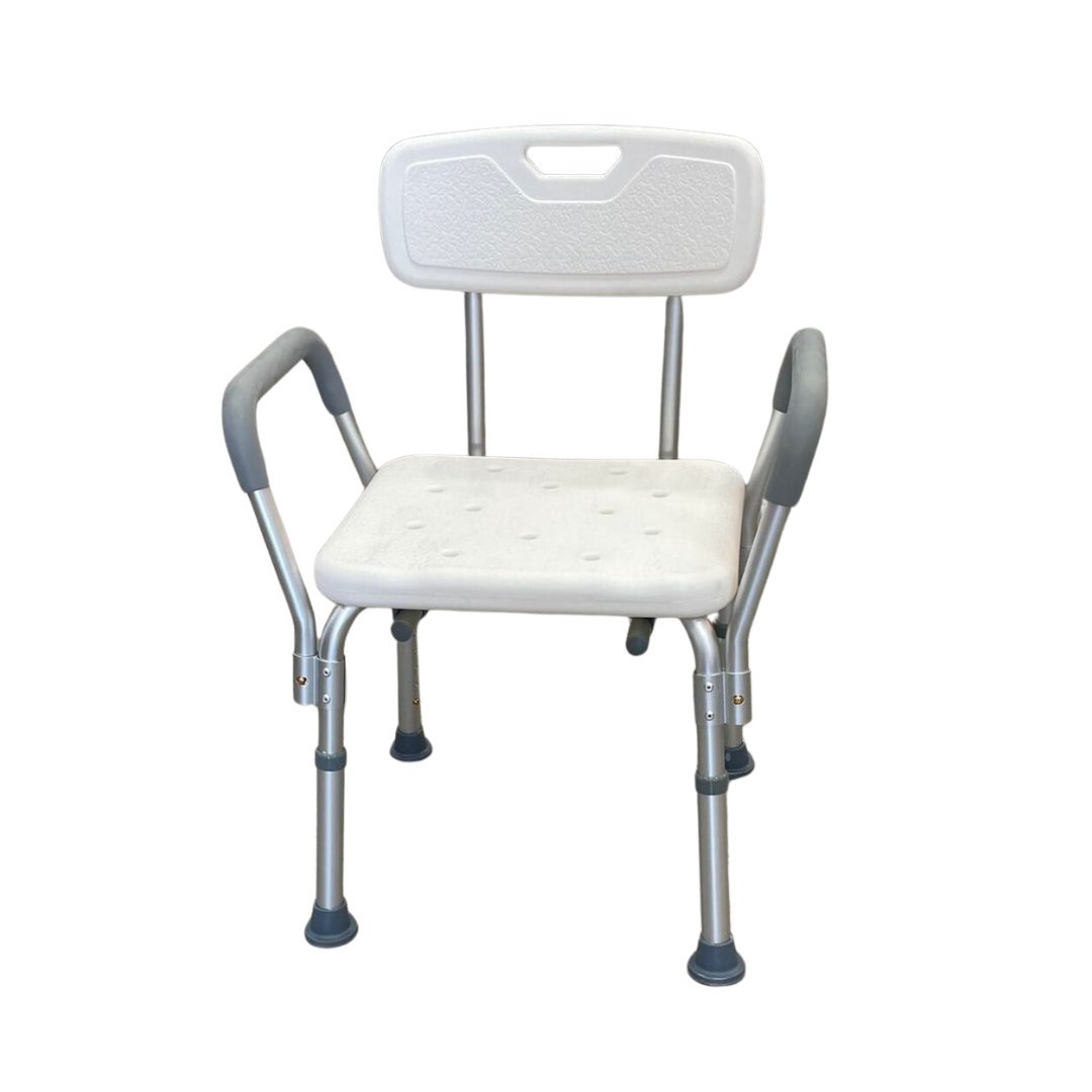 כיסא רחצה טלסקופי קל משקל ועמיד, עם ידיות אחיזה יציבות ומשענת גב מתכווננת, לישיבה נוחה ובטוחה באמבטיה ובמקלחת.