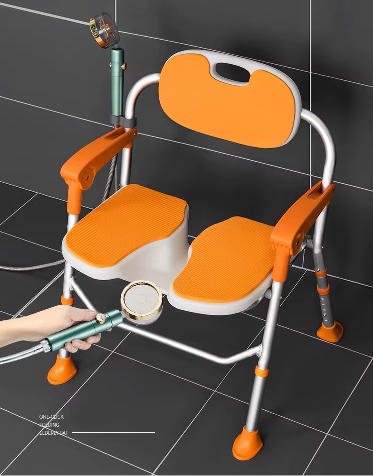 כסא רחצה מתקפל מאלומיניום עם פתח | דגם: לוגנו מתקפל (Lugano)
