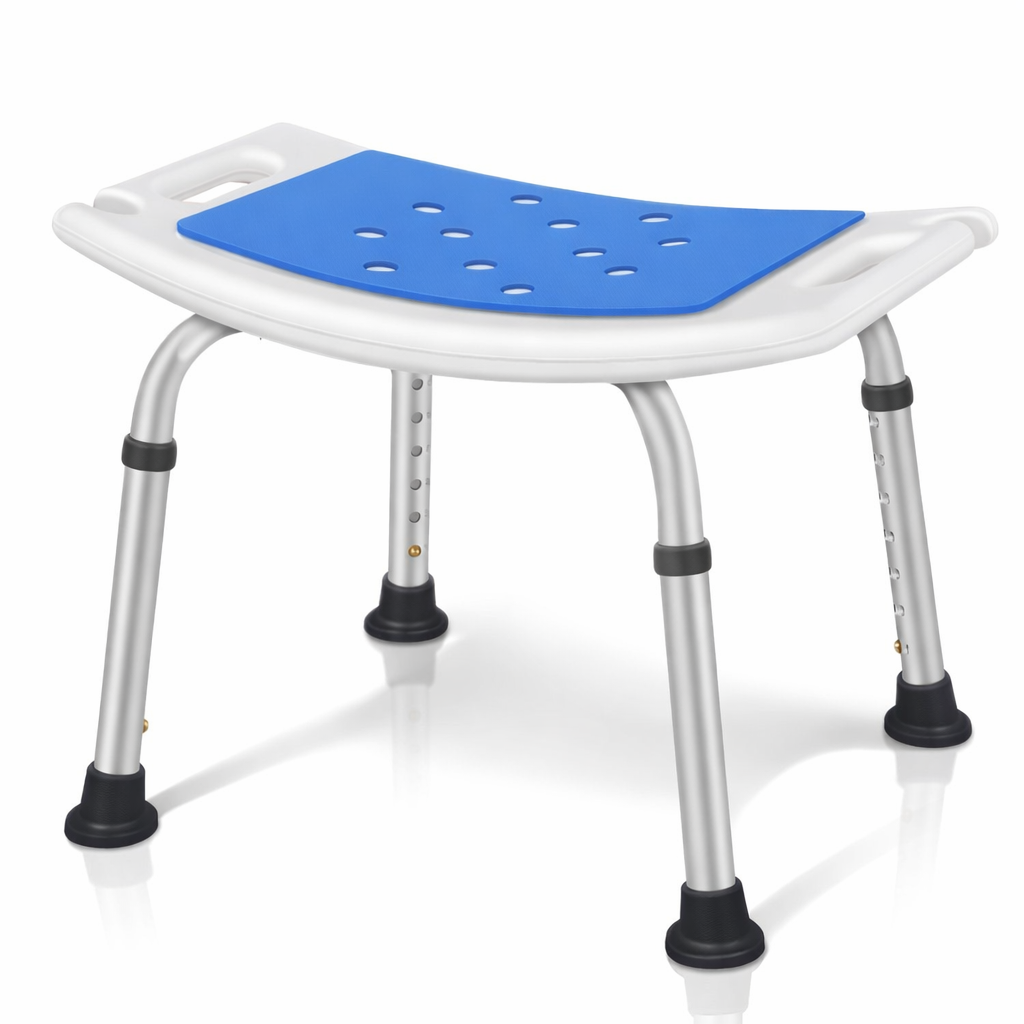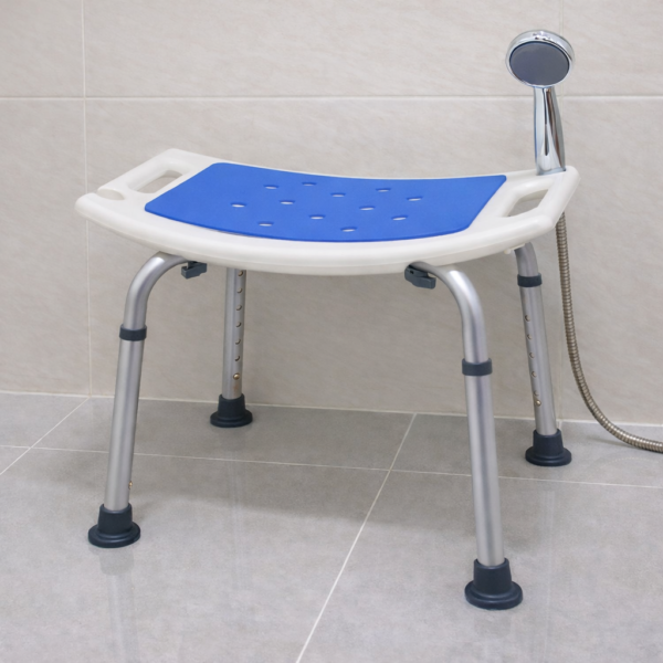 כיסא רחצה טלסקופי קל משקל ועמיד, עם ידיות אחיזה יציבות ומשענת גב מתכווננת, לישיבה נוחה ובטוחה באמבטיה ובמקלחת.