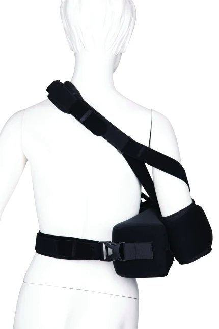 מתלה כתף אורתופדי ייעודי לקיבוע הזרוע בתנוחת הרחקה מתונה של כ־10–15 מעלות, המאפשרת תמיכה וייצוב של מפרק הכתף תוך שמירה על מנח אנטומי מבוקר.
